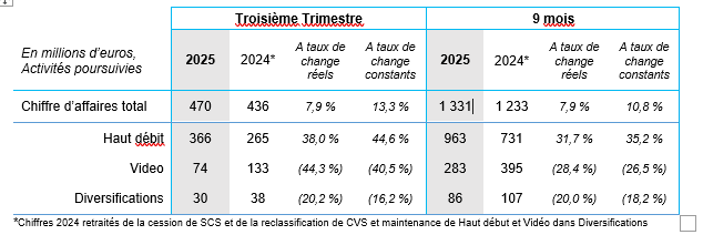 Vantiva : Chiffre d’affaires du troisième trimestre 2025 en hausse de 7,9 %